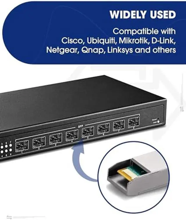 [(Wide Compatibility)] Connects a network switch,routers,NIC,server or other fiber optic equipments with 1 Gb SFP ports to RJ45 Gigabit Ethernet network. Compatible with Cisco, Ubiquiti, Mikrotik, D-Link, Netgear, Qnap, Linksys and others.