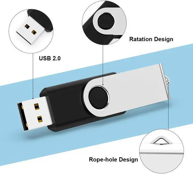 SWIVEL DESIGN - The lightweight and portable usb sticks have a nice and sleek design with a metal swivel cover on each memory stick. The end of the thumb drives has a loop for a lanyard or key ring to keep it safe or on your keys