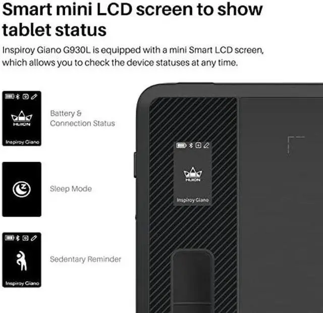 With a 13.6-inch working area, Inspiroy Giano G930L is specially designed to match big-size monitors, enables you to control your cursor precisely and draw more delicate details and lines. G930L is equipped with a mini Smart LCD screen, which allows you to check the device statuses at any time