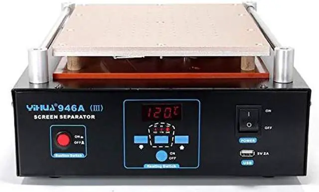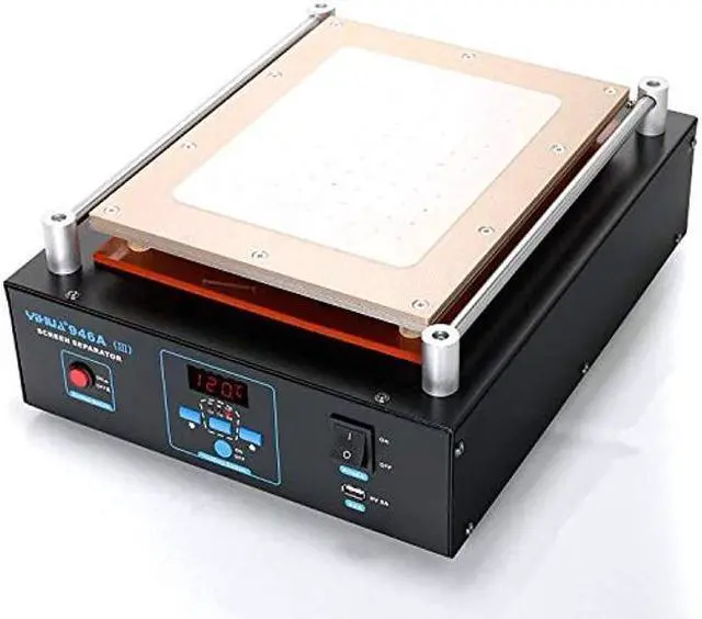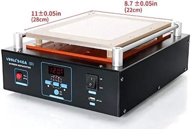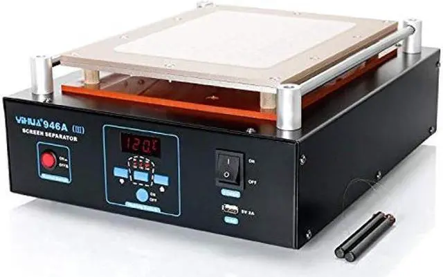 Fully Digital LCD Screen Separator with Built-in Durable Vacuum Pump (for applications on Mobile Phones or iPad). Digitally controlled by a Zilog Dual Core Microcomputer Processor and Powered by PID heat control technology, the advanced precision program. With them, this unit offers rapid warming-up, very accurate temperature control, stability, durability and reliability. It is made by an ISO 9001-2008 Certified Manufacturer with 2 decades of Experience of Soldering & Reworking Tools. What's in the box? 1 x YH-946A-III Screen Separator Machine 1 x Rubber Mat 1 x Cutting Wire 1 x USA Power Code Documentation