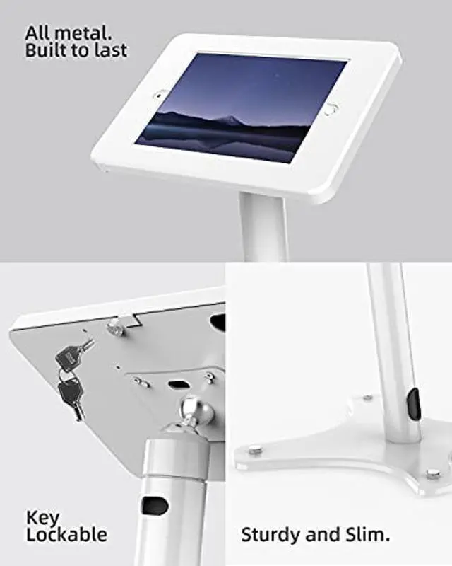 [(Key Lockable and Easy Installation.)] Anti-theft with key locked on the rear panel of the floor stand. Worry free for iPad stealing. Flip-type enclosure makes easy installation possible and very friendly for people who need to take out the iPad every day.
