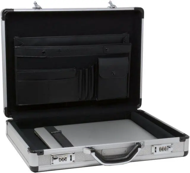 Aluminum Laptop Attache By Alpine Swiss The Alpine Swiss Aluminum Attache Briefcase is sleek, durable, and professional. The roomy interior is perfect for organizing all of your business essentials for meetings or travel.
