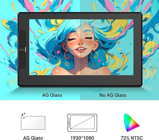 [(Full-Laminated IPS HD Screen)] -The VK1200V2 drawing monitor is equipped with 1920x1080 high-definition 120% sRGB Color Gamut screen,provide vivid images and bright colors.Full laminated screen combining the glass and screen seamlessly.This ensures the accuracy of the cursor position and the lowest parallax.