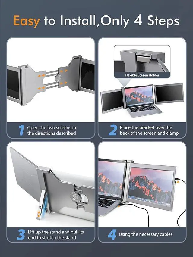 Portable Design-Two screens can be folded up. It is easy to put in your backpack or computer bag without having to buy other extra bags. Work from anywhere with your monitor!