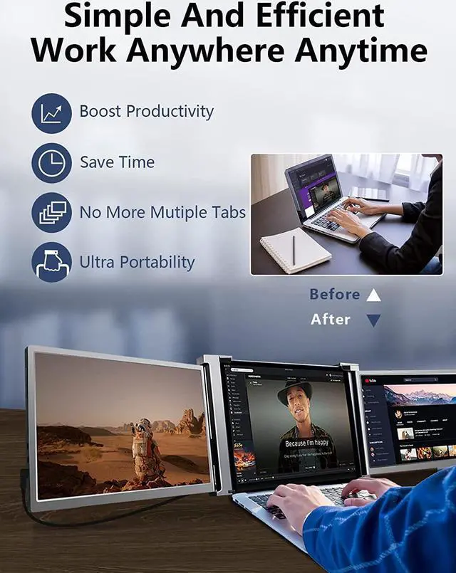 With such a large screen of 15", it brings a better visual experience, a larger visual range, and supports larger laptops. Fully meet the diverse needs of business, design, gaming, programming, and so on. It's also portable enough that you can put it into bags or suitcases for you to use in offices, cafes, hotels, and more.