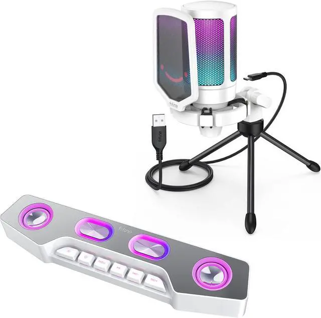 FIFINE White Gaming Mic and RGB External Speaker, USB Microphone, PC Recording Desktop Mic with Mute Button RGB, Streaming Podcasting Microphone, Computer Speaker for Online Game, Zoom (A6W+A16W)