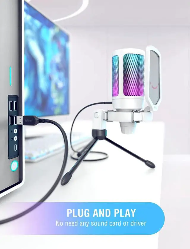 Simple but Special-The white computer microphone coating is elegant and concise. Vivid RGB works together with gaming accessories to create a special streaming or gaming aura. The microphone for PC gives your audience a clean and uncommon live or video picture.