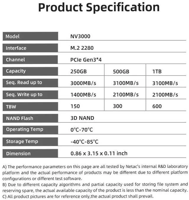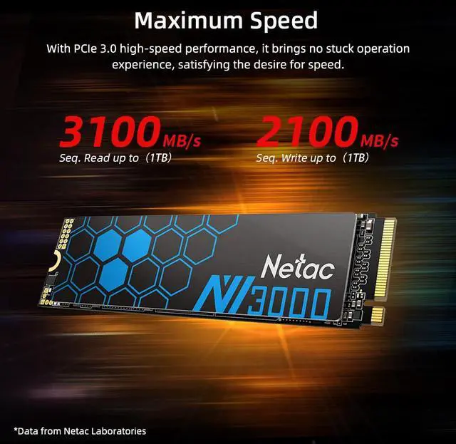 Netac Internal SSD 1TB Solid State Drive M.2 2280 PCIe3.0 Gen 3 x4 NVMe 3100MB/s