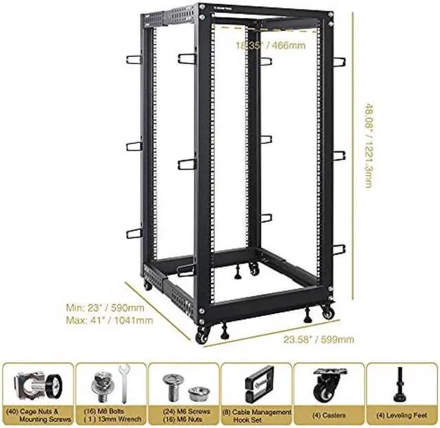 Casters and leveling feet are also included in the package to provide both fixed and mobile application options. It is perfect for IT equipment, servers, network devices, audio video equipment, and etc.