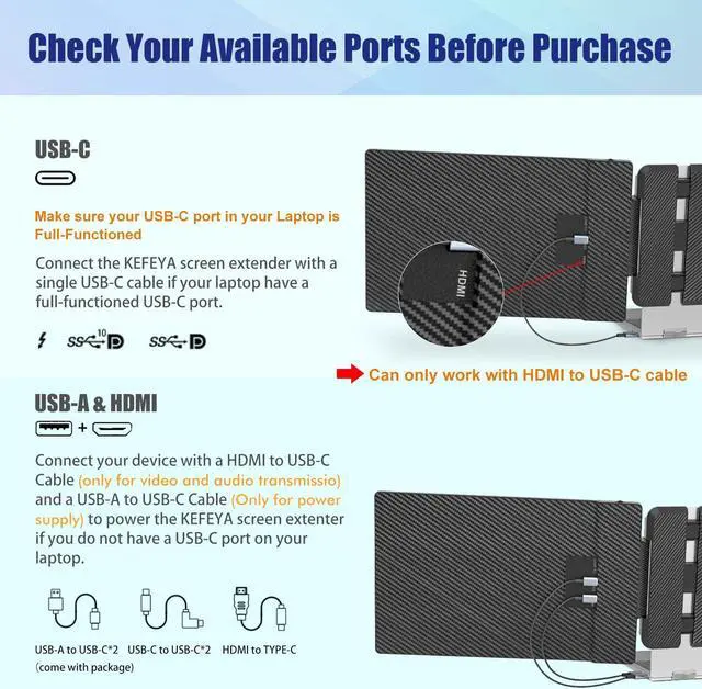 [(Increase Efficiency Up to 200% & Save Time)] :KEFEYA travel monitor for laptop screen extender supports you to open multiple windows at the same time, work, video conference, watch movies, or play games on different screens by not having to switch back and forth on a single laptop screen continuously, increase your efficient by up to 200%. Perfect for people who work on the go,remote workers, watch a movie,IT professionals, Players, Stock traders, Programmers, game players, etc!