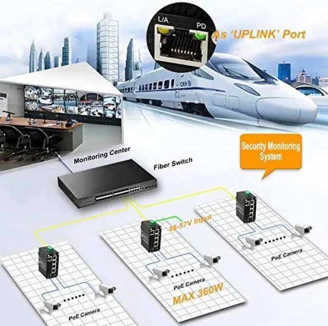 [(Redundant Power Input)] - Hardened PoE fiber switch is designed with DC48-57V redundant external power input, you can select one group to connect and another group for standby, ensuring long-term stable operation.