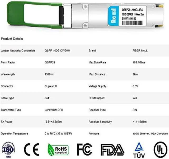 It is fully compliant with the IEEE 802.3 ba 100GBASE-CWDM4 standard and QSFP28 MSA.