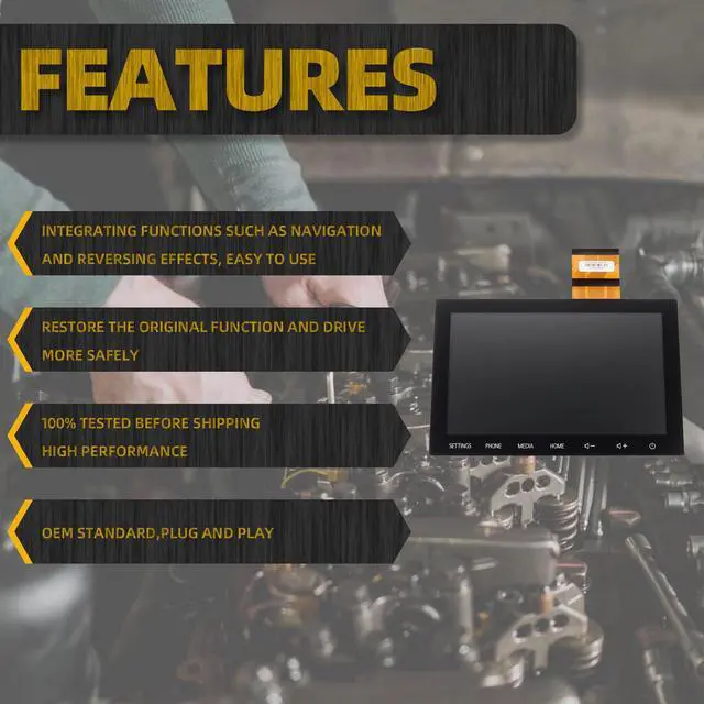 [(Features)] *This LCD touchscreen is made of high quality plastic, strong and durable. *Integrating functions such as navigation and reversing effects, easy to use.