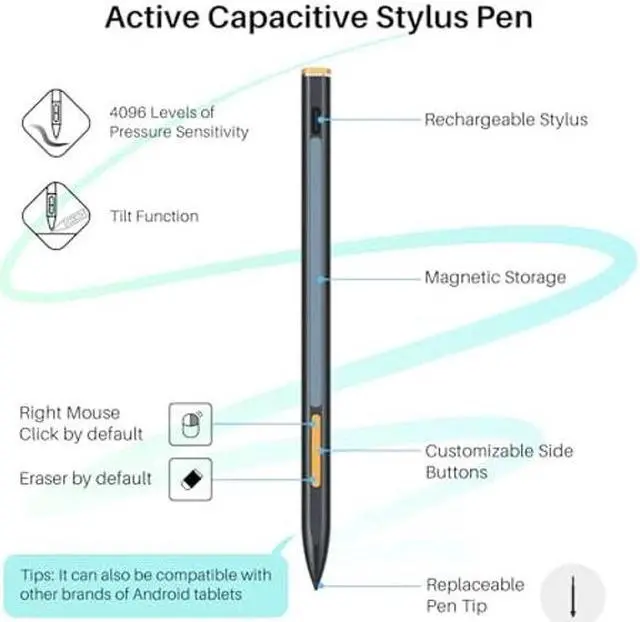 Graphic Tablet with Rechargeable Pen: The art tablet is equipped with a rechargeable pen with 4096-level pressure sensitivity and tilt function, making strokes smooth and sensitive. Perfect for artists and designers who require high-performance tools. And the pen also has a magnetic storage function to prevent loss.
