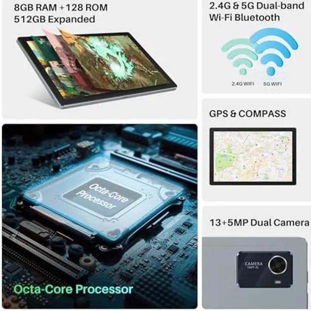Powerful Performance & Storage: An 8-core CPU, 8GB of running memory, and 128GB of storage memory(expandable up to 512GB), With its exceptional processor, it allows you to multitask without any lag. The 5 million front cameras and 13 milli
