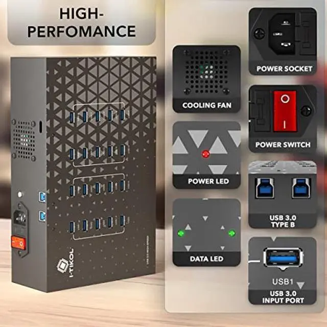 Can be attached to different surfaces. Speed and reliability An active USB hub will provide you with the necessary number of stable connections. 20 USB 3.0 connectors guarantee fast connection and excellent performance of connected devices. USB hub from I-TIKOL - Your reliable assistant anywhere!