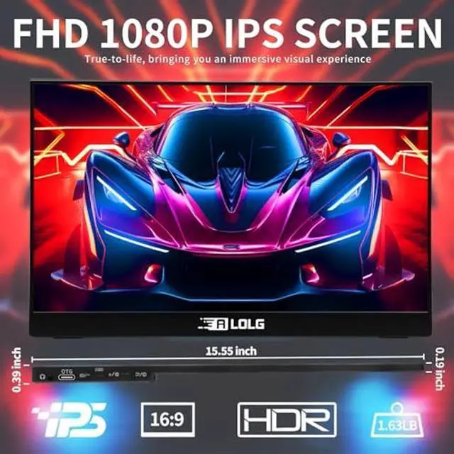 ALOLG Portable Monitor 17.3 Inch with 60HZ FHD 1080P Display,USB-C and HDMI Inputs, Ultra-Slim IPS Panel with HDR and Premium Smart Cover & Speakers-Compatible with Laptop,PC,Phone,PS5,Switch