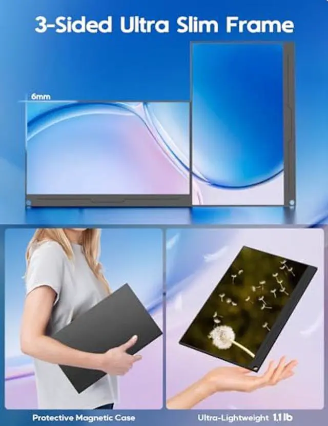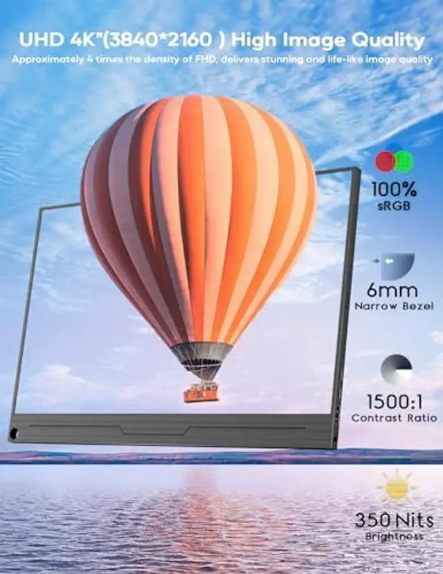 4K Ultra HD Portable Monitor- Portable monitor for laptop equipped with 4K-3840*2160 Ultra HD resolution with 4 times more pixels than FHD, the 15.6-inch IPS panel delivers superior, crisp, immersive images with incredible detail and clarity. 60hz refresh rate and HDR technology for unparalleled contrast and accurate reproduction, perfect for gamers, photographers, content creators, and multitaskers.