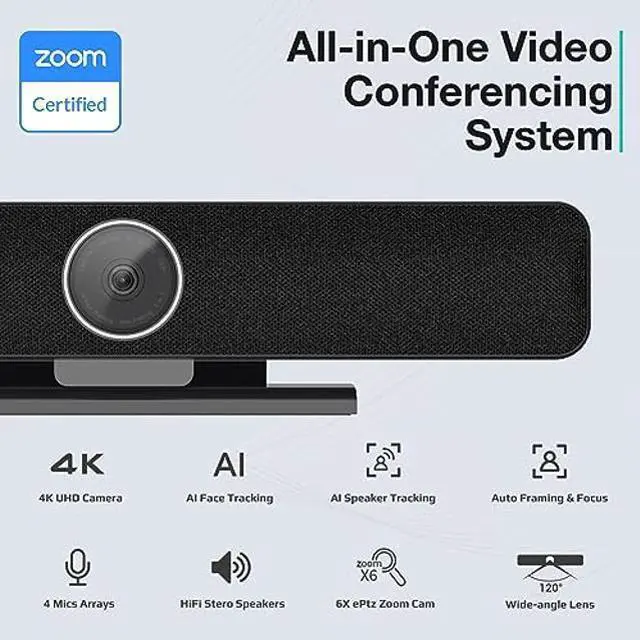RayBit TB5 Video Conferencing System - Zoom Certificated, Ultra 4K Pro Audio and Video Conference Room Camera with 4 Microphone Arrays & Stereo Speakers, 120deg Wide Angle Webcam for TV/Meeting Room