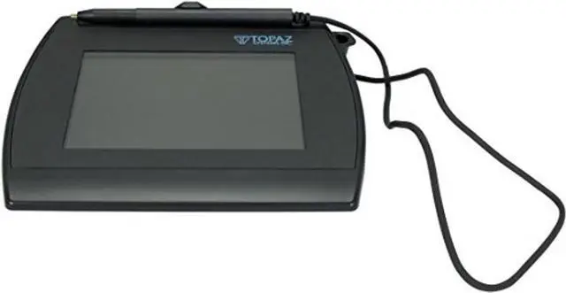 The Topaz T-LBK766-BHSB-R SignatureGem LCD 4x5 is an advanced electronic signature pad with a large, bright QVGA (320x240) TFT LCD that captures and displays high-resolution "electronic ink" under the pen tip for a natural signature. Bundled secure software APIs provide for interactive text, graphics, and pen-tap hotspots and checkboxes which enable users to navigate screens, read agreements, and select preferred options.