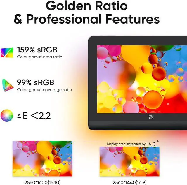 Enhanced and Brilliant Color Coverage: 99% sRGB color gamut coverage and 159% sRGB color gamut area ratio, ^E <2.2 high color accuracy, let you create boldly in stunning color accuracy and de