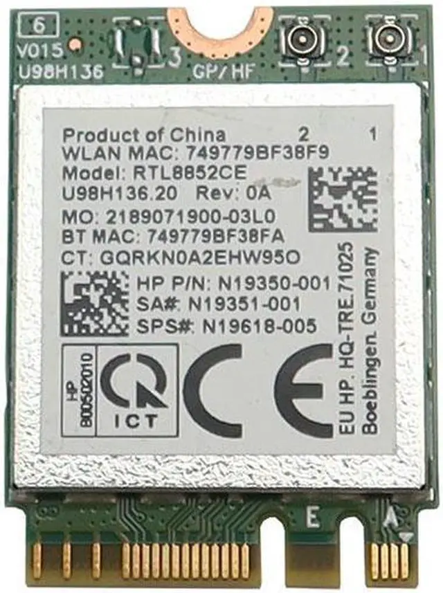 Features: FCC ID: TX2-RTL8852CE; IC: 6317A-RTL8852CE