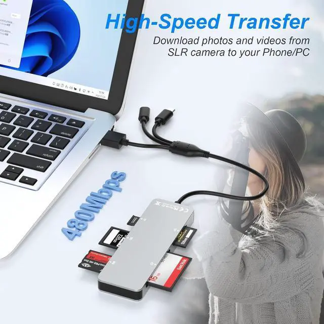 Card Reader: The multi-card reader comes with CF/SD/TF/XD/MS five card slots. It supports a wide range of card types such as SDXC SDHC SD CF MS Micro SDXC and Micro SDHC cards480Mbps
