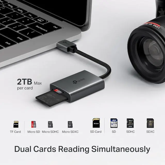 ???????????????????????????????????????????????? - With dual SD and microSD slots this SD card adapter supports up to 2TB card capacity expanding the range of compatible cards. Supports SD SDHC SDXC microSD microSDHC microSDXC cards perfect for quickly transferring photos videos and large files without constantly swapping cards.???????? -??????????????????.