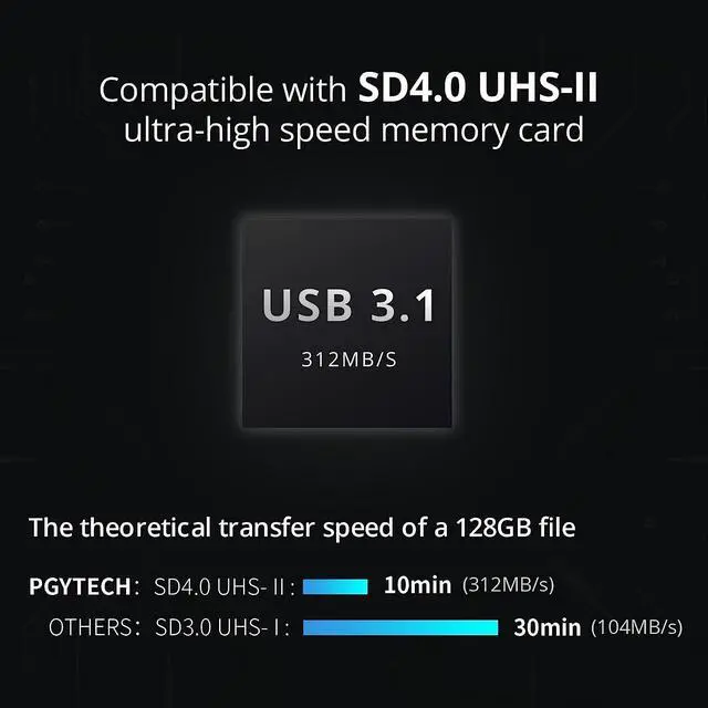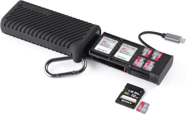 Case Protection: Aluminum-alloy material shell& rubber case which can reach IP54 waterproof level to protect your sd cards.