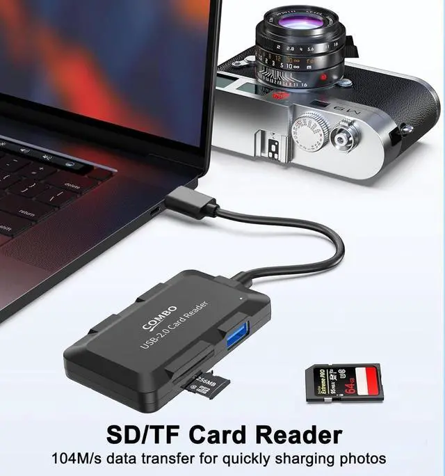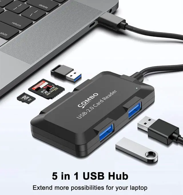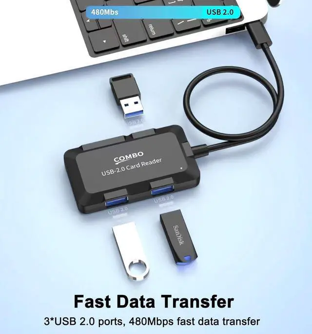 [5-IN-1 USB SD Card Reader] This multifunctional USB Hub enable to read and write simultaneously with 2 memory cards (SD/microSD) and 3 USB Ports. Bidirectional data transfer with a speed of up to 480Mbps. Portable design helps you share your happiness on social media anytime anywhere. Compatible with all kinds of dash cams trail cams and digital cams memory SD/TF cards with up to 2TB memory capacity. [Reliable USB Extender] Plug & Play no drivers needed. Equipped with 3 USB-A 2.0 ports for you to connect multiple USB peripherals like USB drives mouses keyboards cameras microphones etc.
