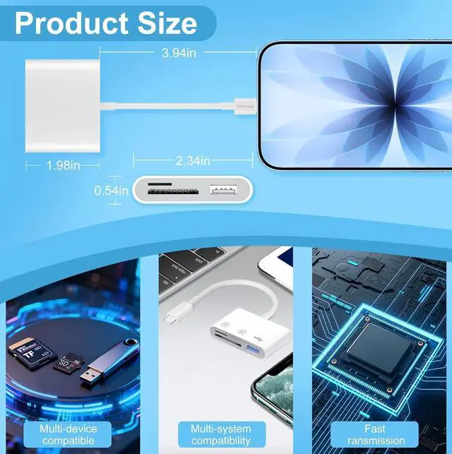 With OTG data transfer rates up to 480Mbps it can simultaneously read and write two cards with capacities up to 1TB. Easily access files or back up and archive photos and videos compatible with SD SDHC SDXC Micro SD TF cards Micro SDHC Micro SDXC UHS-I UHS-II camera cards and more[MacBook Accessory with USB Female Port] This adapter not only has dual card slots but also comes with a USB interface that can read and write from three ports simultaneously. It is a good partner for MacBook and iPad Pro safe and reliableSafe Durable PortableThis USB SD card reader case is made of upgraded fireproof material to effectively protect your device.