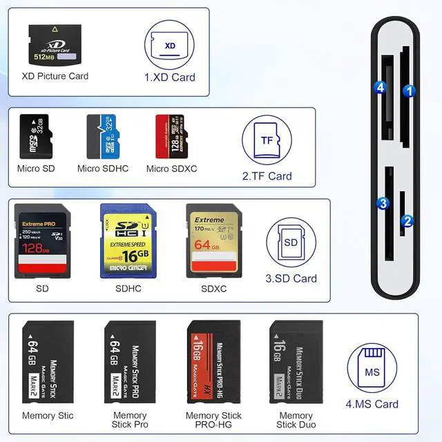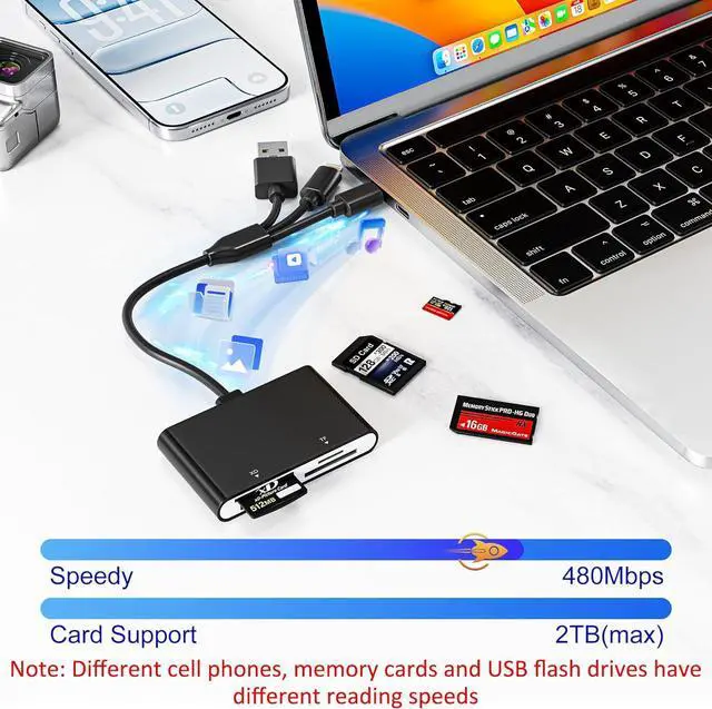 Mbps Fast Transfer: Transfer 4GB videos in 60 seconds (8x faster than USB 2.0 ) with pro-grade speeds for 4K videos RAW photos and large datasets. Optimized as memory stick pro duo card reader for iPhone with stable OTG photo preview. This multi-function SD/TF/MS/XD card reader also enables high-speed two-way transfer.