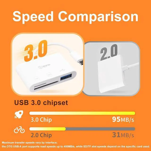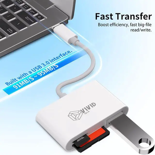 Blazing Fast USB 3.0 Transfer Speeds Engineered with advanced USB 3.0 technology enabling you to move 1GB of HD photos or 4K videos in seconds. Significantly reduces waiting time compared to USB 2.0 readers. Backward compatible with USB 2.0 / 1.1 ensuring efficient workflow for content creators editing on the go. Ultimate 3-in-1 Versatility Unlock seamless data access with our all-in-one solution featuring SD TF (Micro SD) and OTG capabilities. This USB C card reader eliminates the need for multiple adapters Perfect for photographers videographers and travelers who carry various storage media from cameras drones and action cams.