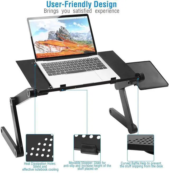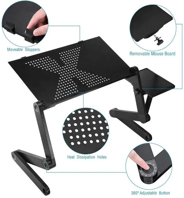 User-Friendly Design:Comes with a removable mouse board allows comfortable mouse navigation and designed with curved baffle,so as to prevent the stuff placed on slipping from the foldable laptop table. Moreover,it features heat dissipation holes,which support silent and effective laptop cooling while you're using your laptop.