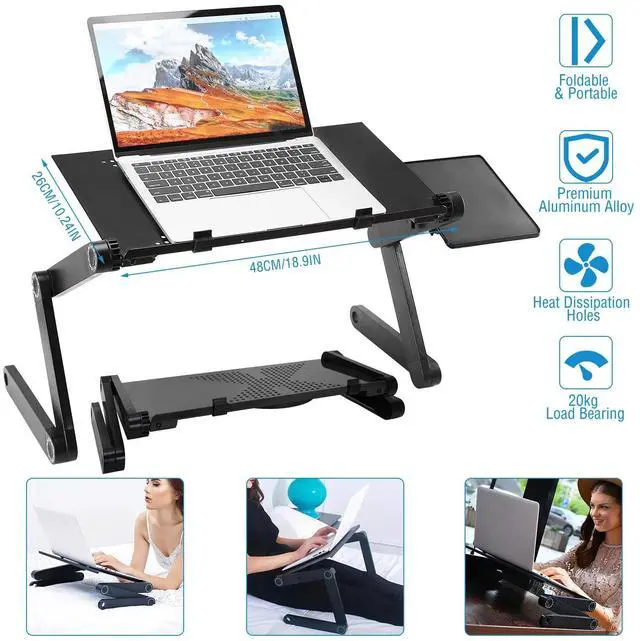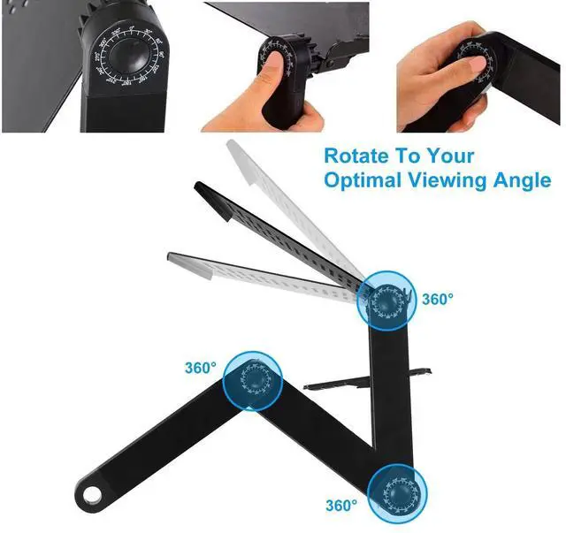 Fully Adjustable & Ultra-Convenient:Foldable Laptop table has sturdy and 360-degree adjustable legs so you can reshape it to any angle and proper height you want. The collapsible frame provides limitless angles to fit any body position,so as to avoid neck and back pain in a certain extent.