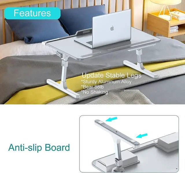 • ?? High Quality Bed Desk for Laptop? - Adopt high density board leather surface with Skin-friendly, Waterproof, Wearproof and no-slip; aviation-grade aluminum of the feet which is more stable without shake.