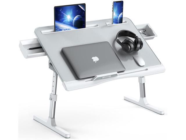 Foldable Laptop Bed Tray Desk, Adjustable Laptop Bed Table with Heights and Angles, Upgraded-Sturdy Laptop Stand for Bed/Sofa/Couch/Floor, Lap Tablet Desk with Double Drawers (XL, Grey)