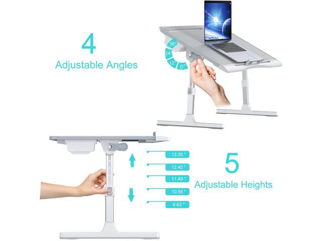 - ??Adjustable for Heights and Angles? - There are 5 heights from 9.45" to 13.35" and 4 angles from 0° to 36°to adjust, which ensures different people to use this laptop table in different vintage poses.