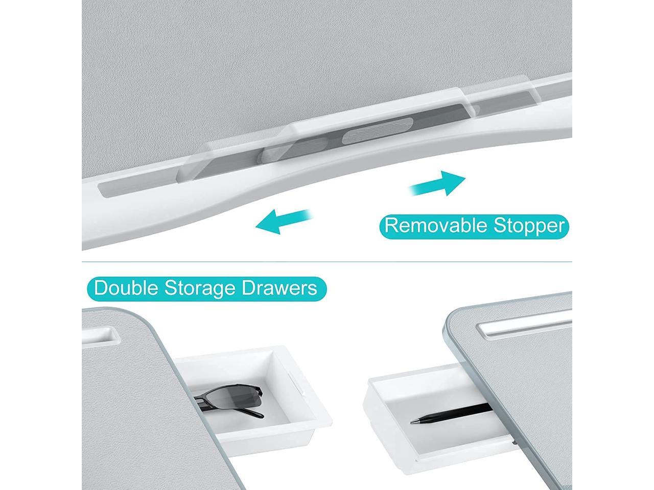 - ??Laptop Desk with 2 Drawers? - There are double storage drawers to put pens, glasses, USB cable, mouse, charger, en