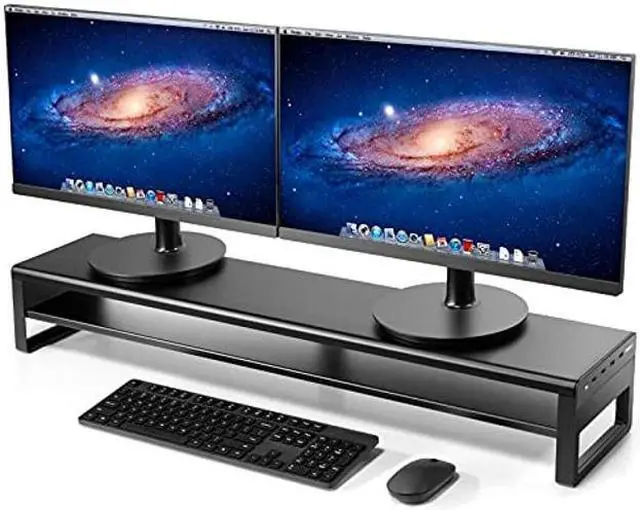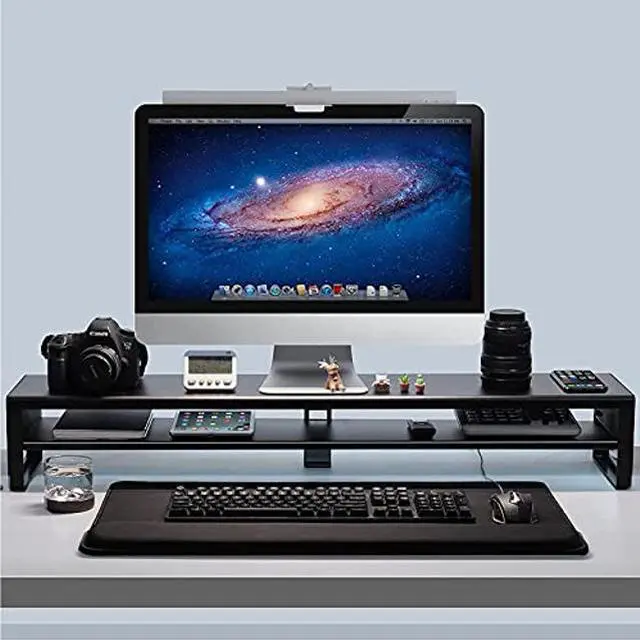 This 2 tiers dual monitor stand adds extra space for tidying up a messy desk, providing an efficient and tidy working environment.