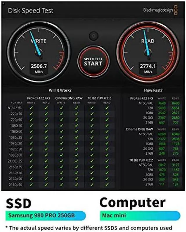 • LIGHTENING-FAST 40Gbps. Speed test with Samsung 980 EVO Plus on Macbook Pro, the Read / Write speed of ACASIS 40Gbps nvme enclosure reaches up to 2805MB/s / 2734MB/s( If your SSD does not support NVMe protocol, the speed will not exceed 600MB/s, Different speed may vary from different system also).