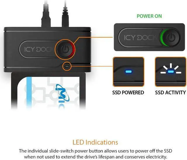 ICY DOCK USB 3.2 Gen 2 (10Gbps) to U. 2 NVMe SSD Thunderbolt 4 Port Compatible Reader Adapter with USB-C+A Cables ^^ EZ-Adapter Ex MB931U-1VB R1