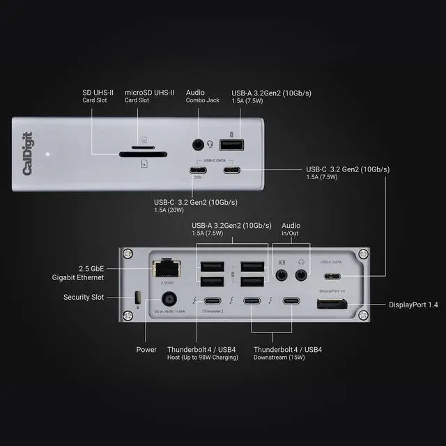 CalDigit TS4 Thunderbolt 4 Dock - 18 Ports, 98W Charging, 40Gb/s Thunderbolt 4, USB-A/C, 2.5G bE, 8K/6K Displays, Mac/PC/Chrome Compatible