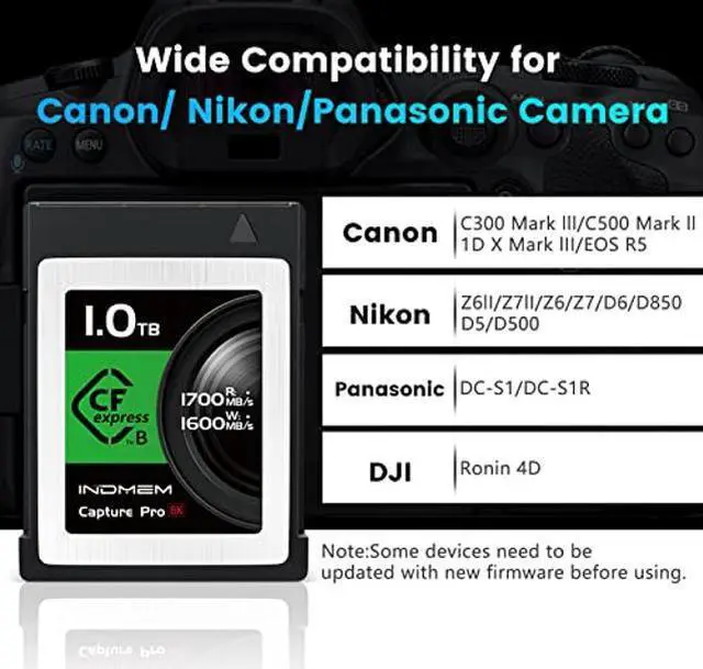 [(Superior Compatibility)] - -CFExpress Video Memory Card Compatible with Nikon D5, D6, Z6 / Z7/Z9, D850, D500, Panasonic S1 / S1R, Canon EOS-1DX Mark III, Canon EOS R5 , Canon EOS C300 / C500 Mark III.