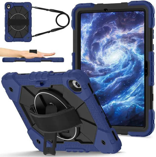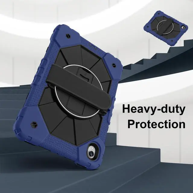 Built-in 360 Rotatable Kickstand + Hand Strap : 360-degree rotating swivel stand supports position of 3 angles(Vertical, Horizontal, and Halfway between), ideal for watching videos, conferences and travelling. Soft rotating handle strap prevents falling of tablet, featuring convenient use for school teachers, students, waiters, doctors, nurses and conference presenters.