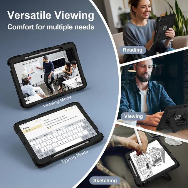 Mil-Grade Drop Protection: The case is made from shockproof hard PC & soft silicone (so nice to touch),upgrad grade thickened corners & shock-proof design keeps your ipad air 5th generation case better protected to avoid daily bumps,scrapes,defeat 99.99% accidental drops,unbreakable!