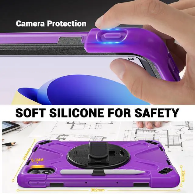 Case for Xiaomi Redmi Pad 2 Pro 12.1 inch 2025 2026, Protective Shockproof Cover with Pen Holder, 360 Rotatable Stand, Hand Strap, Shoulder Strap, Universal Stylus Pen Purple