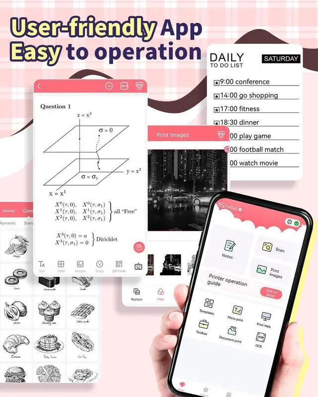 Multifunctional Use - M04S portable pocket printer has a wide range of applications. Suitable for office people to print drawings or documents, students to print test papers or notes, and it is also suitable for printing post-it notes or label stickers at home. It is an all-in-one thermal printer.