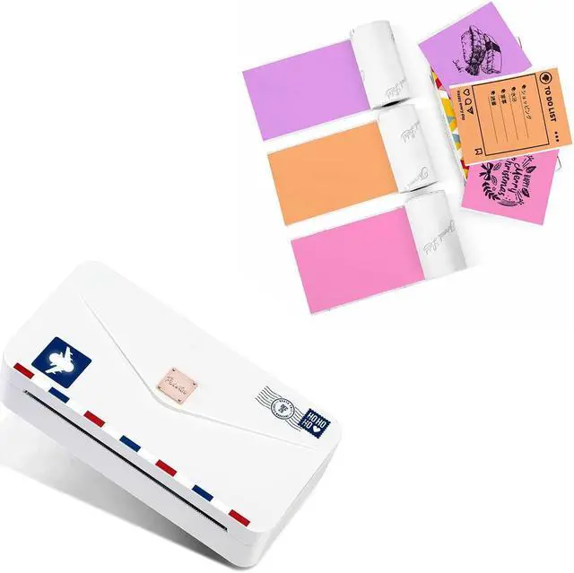 High Resolution With 300dpi- Adopt with inkless printing technology, clear printing effect when fully charged. No ink or carbon tape is needed, and the printing paper will not turn black. This mini printer is equipped with a roll of white 110mm wide thermal paper.