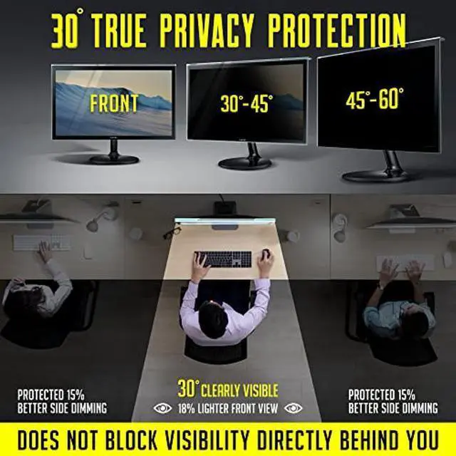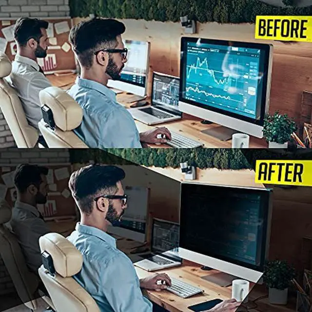 Do you often have to worry about performing everyday tasks on your computer just because you fear a lot of people prying around or snooping into your desktop screen? Do you hesitate entering the passwords or reading/viewing/surfing content on your desktop that befits to an office environment but you still do not want others to know about it? Try Vintez Computer Privacy Screen Filter - Restricts the visibility of screen to the straight position - Helps improve confidentiality of your information, surfing details, etc. and reduces risk of any visual hacking or visual thefts - Anti-scratch technology, reduces exposure of your eyes to UV by 96% and curbs Blue light by 65% - Micro-suction technology instead of the installation kits -